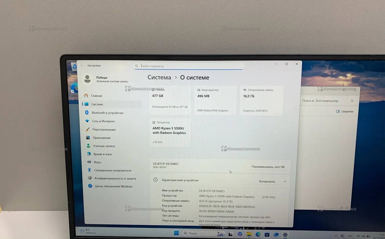 Продажа Ноутбук Honor Magic Book 15 Ryzen 5 5500U б/у по выгодной цене. Стоимость